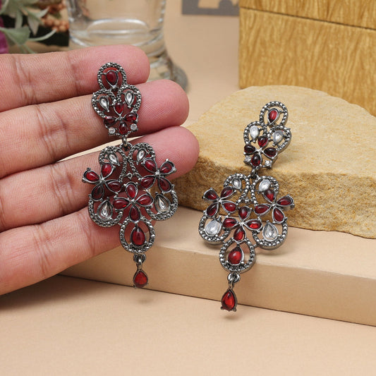 Deep Maroon Color Oxidised Earrings For Lehenga And Saree Styles