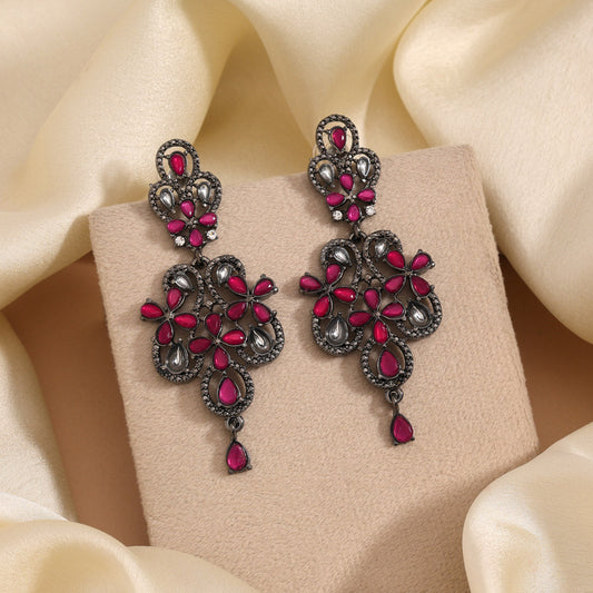 Charming Rani Color Oxidised Earrings For Weddings And Occasions