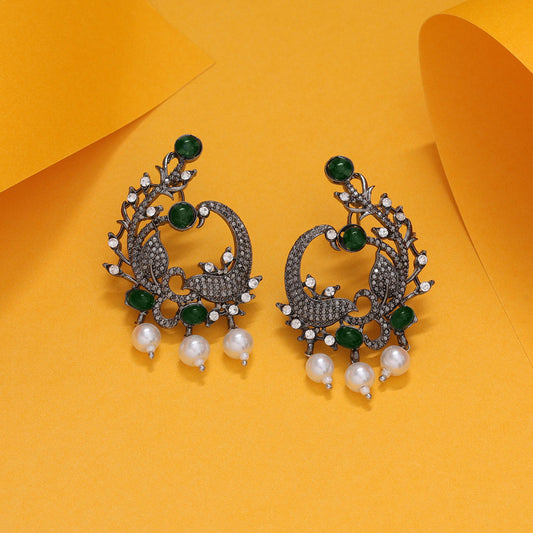 Green Color Fashion Earrings In Classic Peacock Inspired Pattern