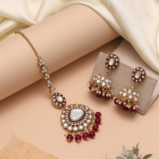 Designer Maroon Color Kundan Necklace Set For Classic Indian Outfits