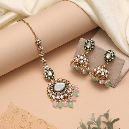 Dual Tone Pink & Pista Green Color Kundan Necklace Set For Gifting
