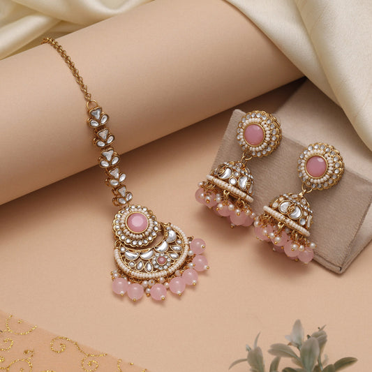 Pink Color Fashion Earrings With Glamorous Shine And Stone Embellishment