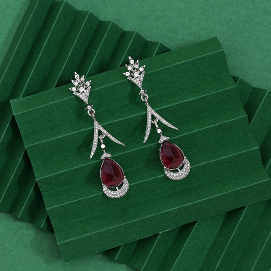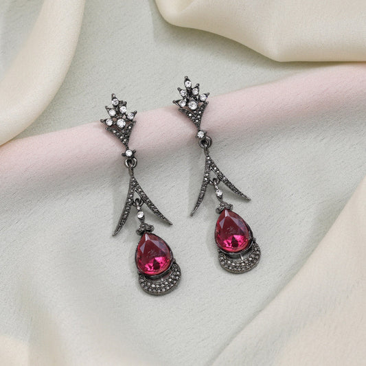Magenta Color Fashion Earrings With Sparkling Accents For Glamorous Nights