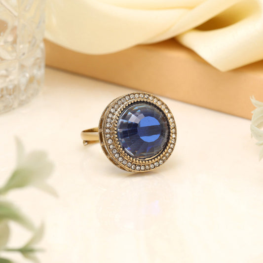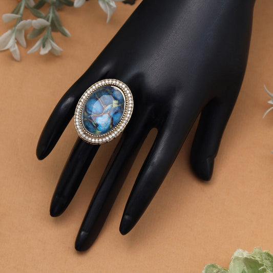 Ocean Turquoise Blue Color Kundan Ring For Women