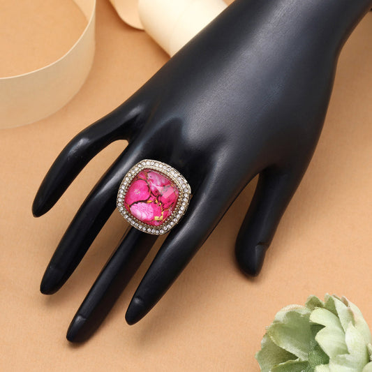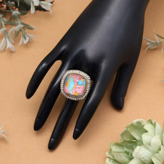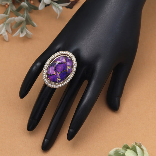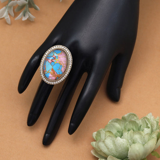 Coastal Turquoise Blue Color Kundan Ring For Women