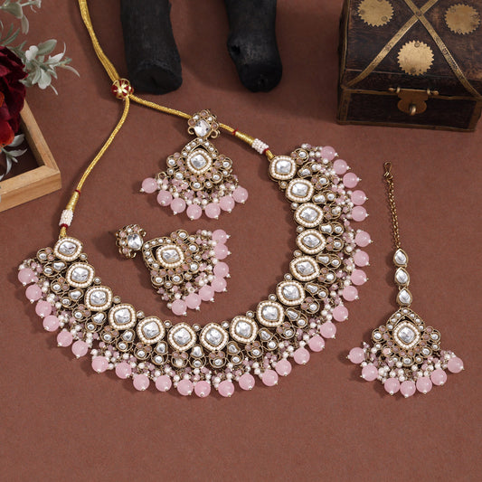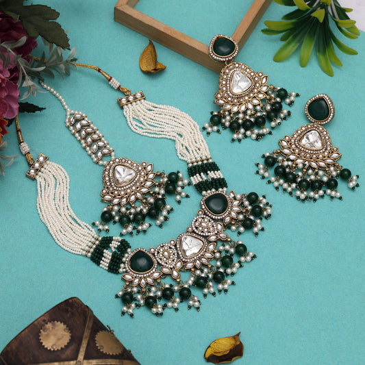 Traditional Gold Color Pakistani Kundan Necklace Set