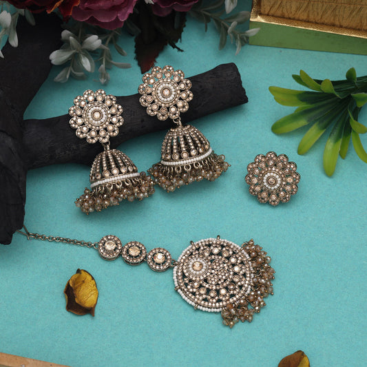 Ocean Firozi Color Kundan Earrings With Maang Tikka