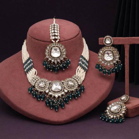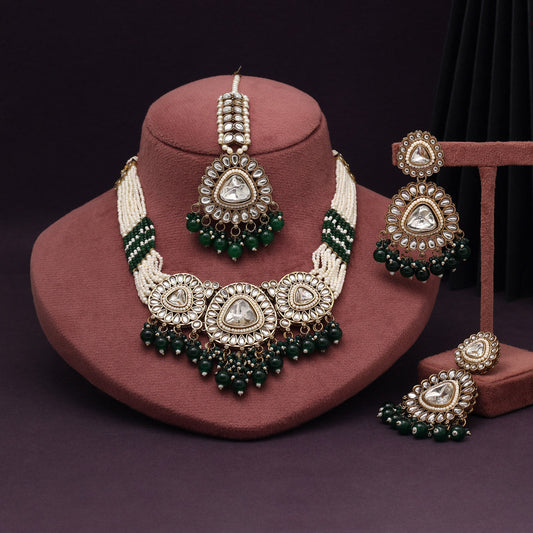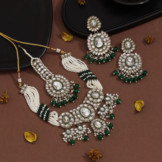 Leafy Green Color Kundan Necklace Set