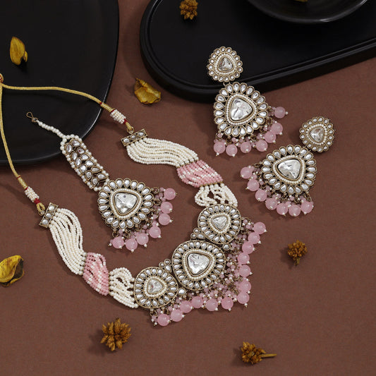 Charming Pink Color Kundan Necklace Set