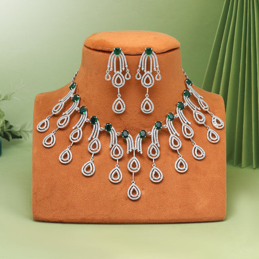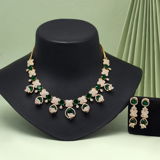 Green Color Matte Gold Rajwadi Temple Necklace Set
