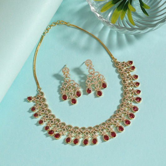 Rani Color Matte Gold Rajwadi Temple Necklace Set
