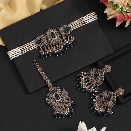 Blue Color Choker Kundan Necklace Set (KN1464BLU)