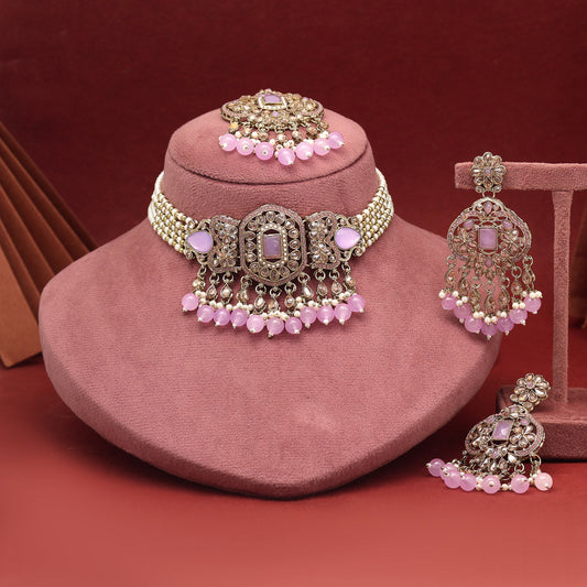 Light Purple Color Choker Kundan Necklace Set (KN1464LPRP)