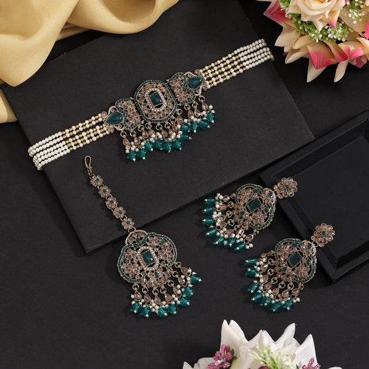 Rama Green Color Choker Kundan Necklace Set (KN1464RGRN)