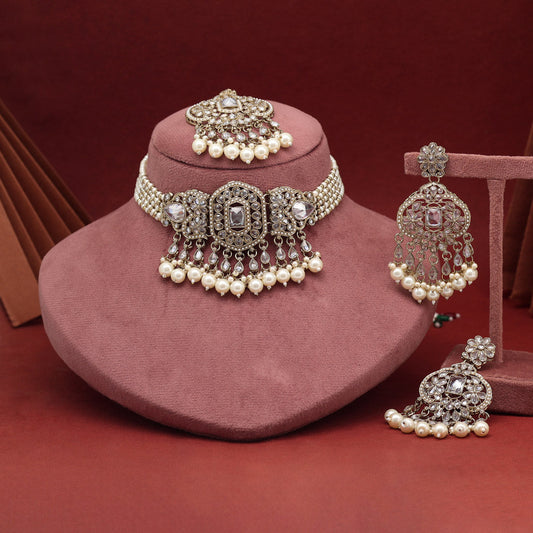 White Color Choker Kundan Necklace Set (KN1464WHT)