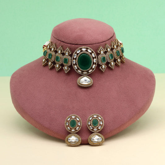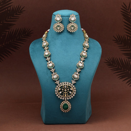 Green Color Premium Quality Moissanite Kundan Necklace Set (CZN1070GRN)