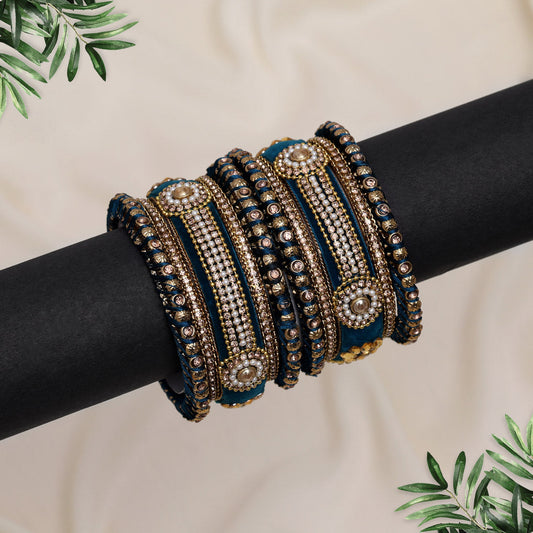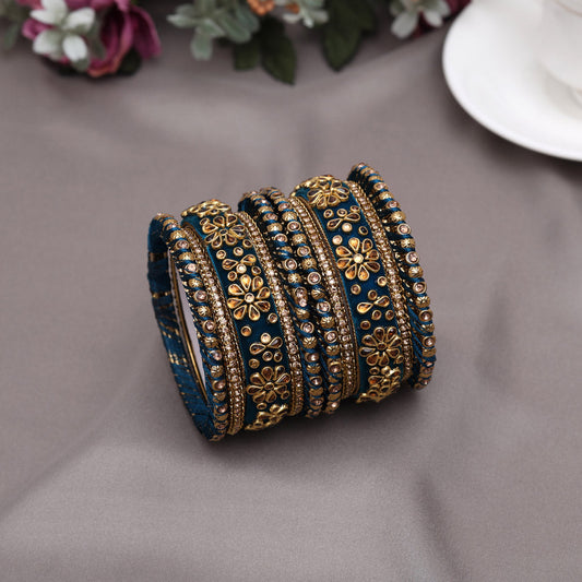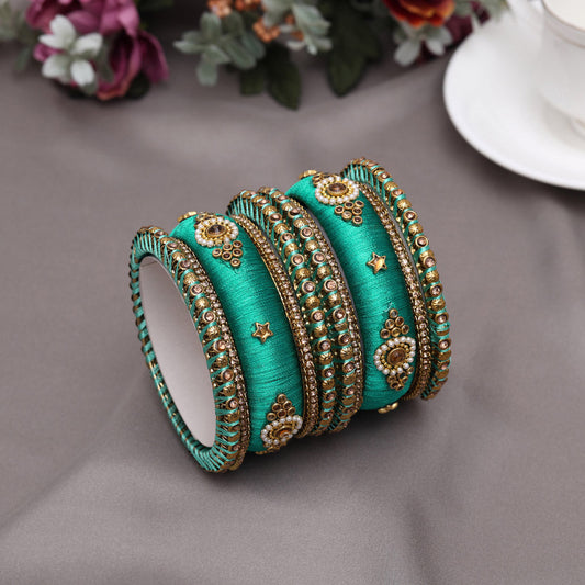 Bottle Green Color Thread Bangle Set: 2.12