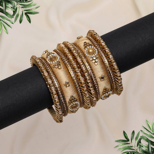 Cream Color Velvet Thread Bangle Set: 2.10