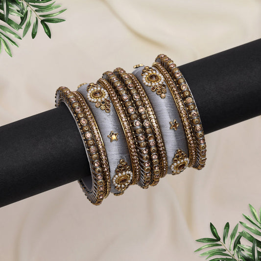 Grey Color Thread Bangle Set: 2.8 (TRB187GRY-2.8)