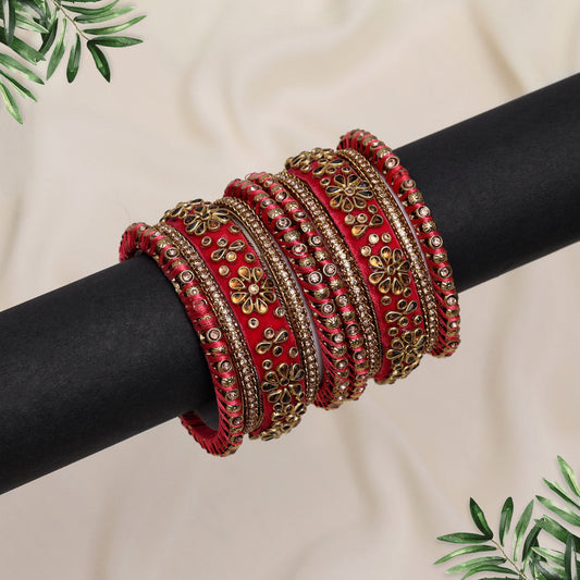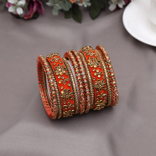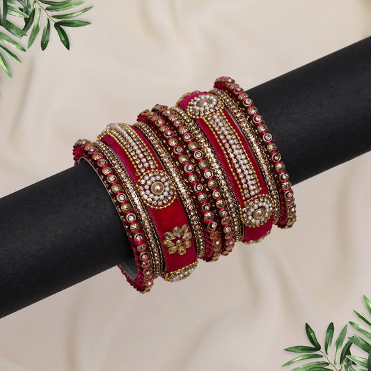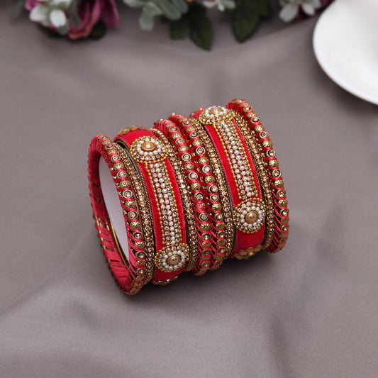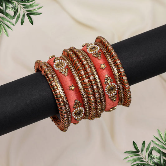Dark Peach Color Velvet Thread Bangle Set: 2.8