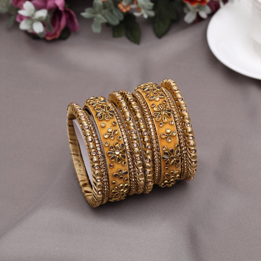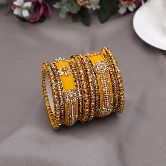 Yellow Color Velvet Thread Bangle Set: 2.10 (TRB185YLW-2.10)