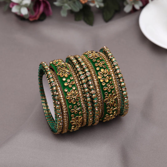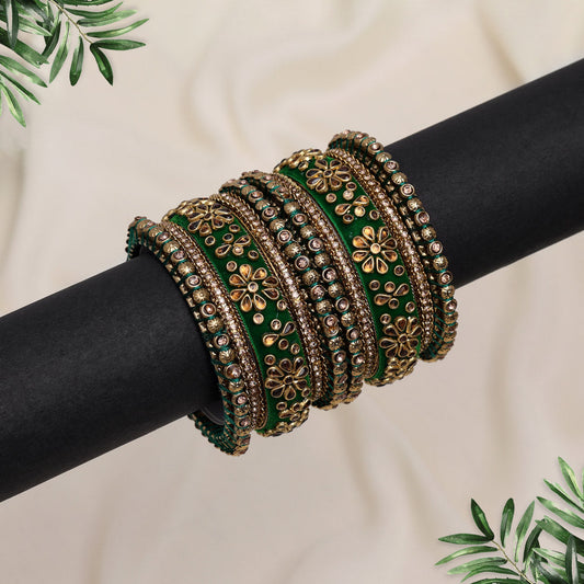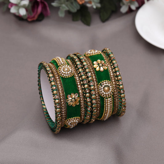 Green Color Velvet Work Bangle Set: 2.10