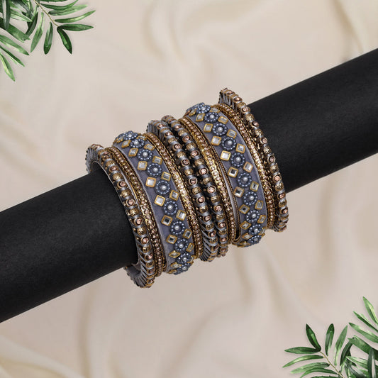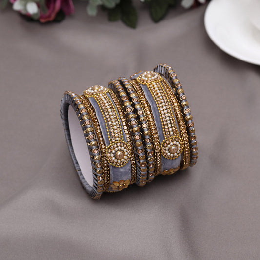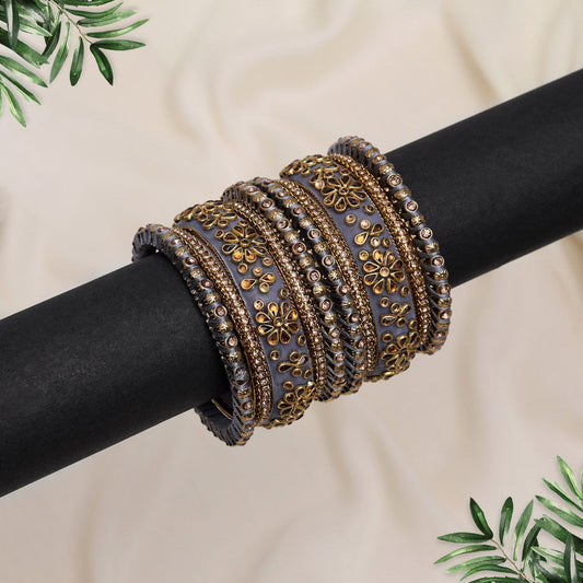 Grey Color Velvet Work Bangle Set: 2.8 (TRB181GRY-2.8)