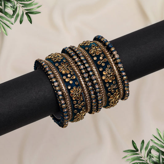 Rama Green Color Velvet Work Bangle Set: 2.10