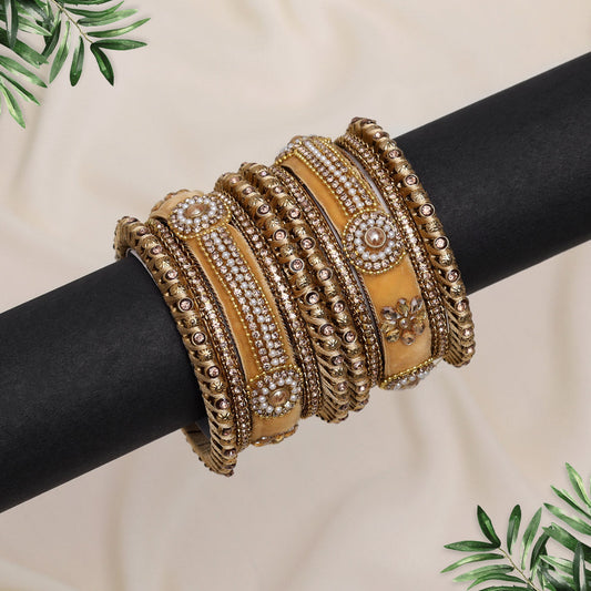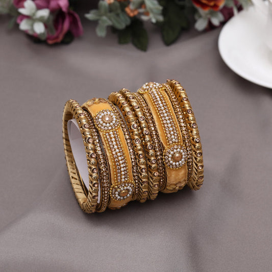 Cream Color Velvet Work Bangle Set: 2.10
