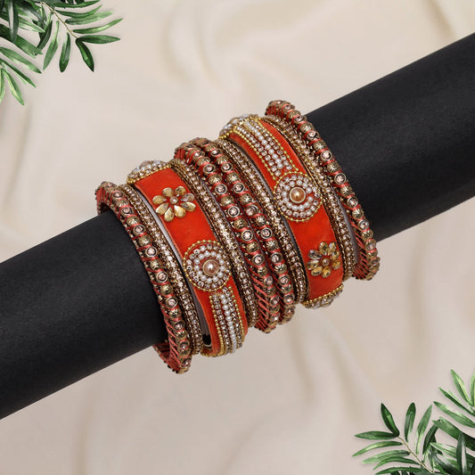 Dark Peach Color Velvet Work Bangle Set: 2.12