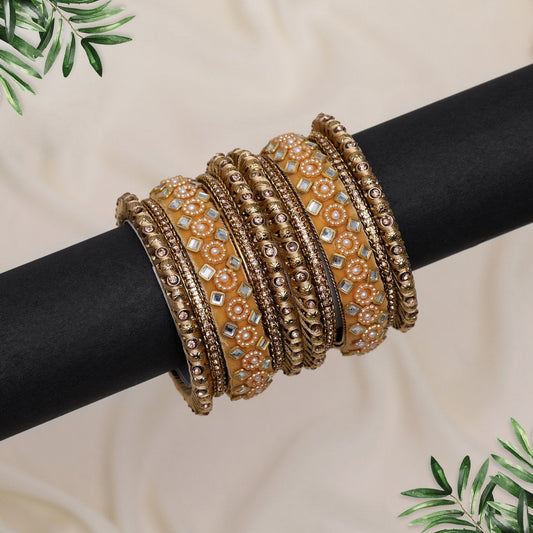 Peach Color Velvet Thread Bangle Set: 2.10
