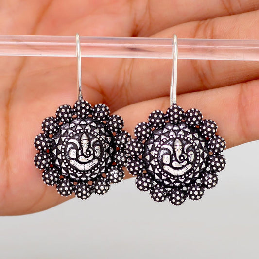 Wedding Ethnic German Silver Oxidised Earrings (GSE469SLV)