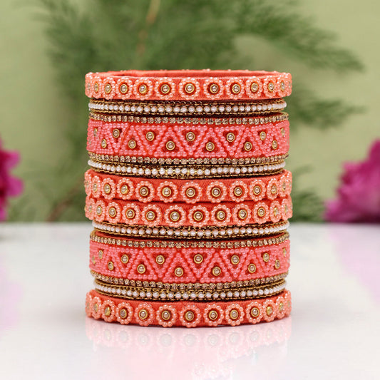 Peach Color Thread Bangle Set: 2.8 (TRB183PCH-2.8)