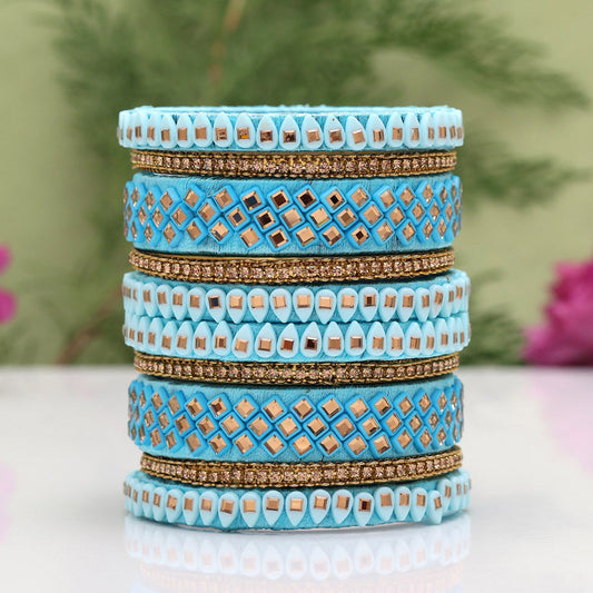 Turquoise Blue Color Thread Bangle Set: 2.8
