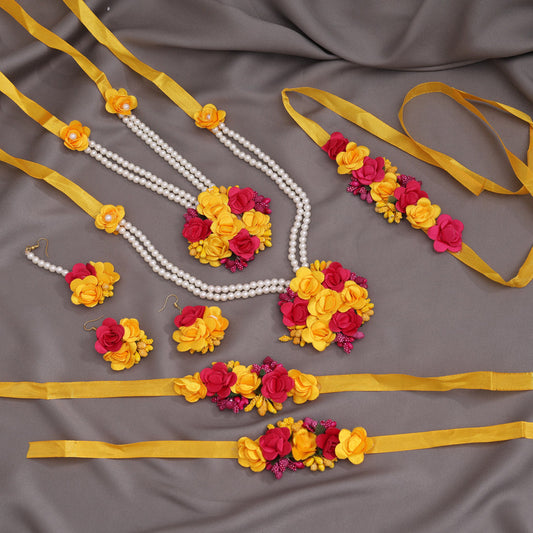 Rani & Yellow Color Synthetic Rose Floral Bridal Set
