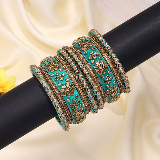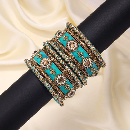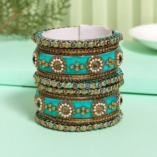 Turquoise Blue Color Thread Bangle Set: 2.4