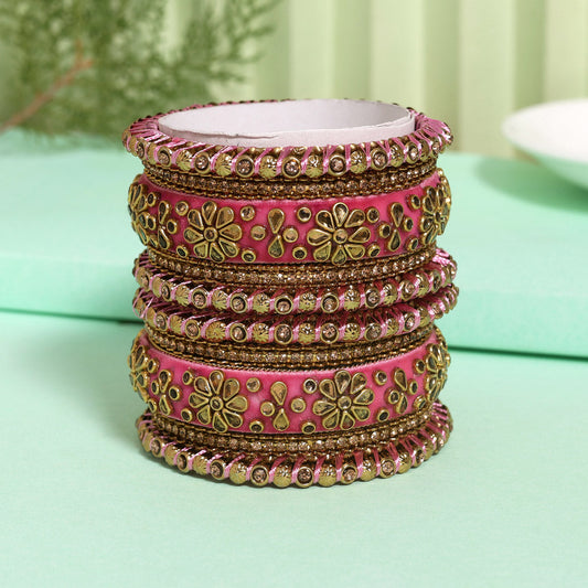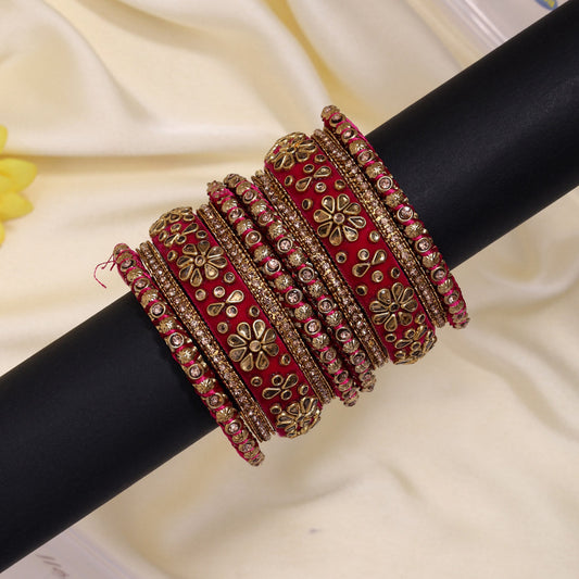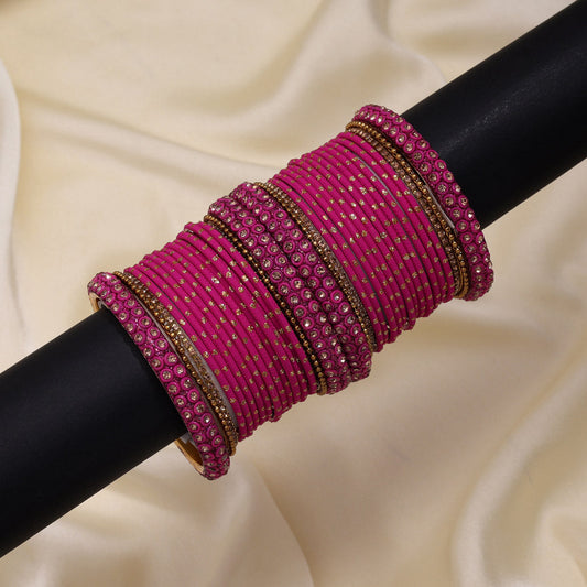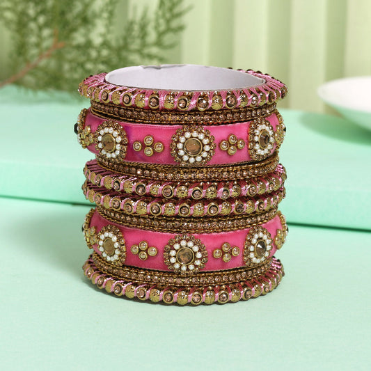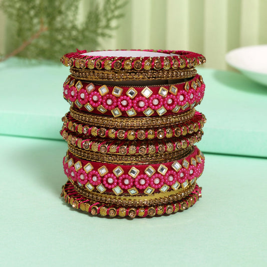 Pink Color Velvet Work Bangle Set: 2.8 (TRB180PNK-2.8)