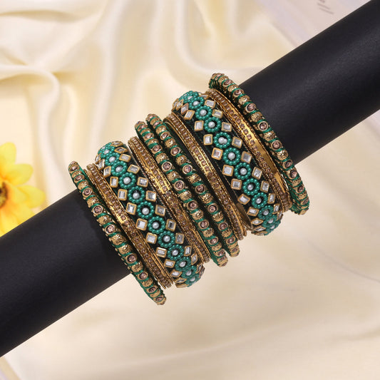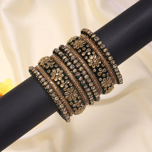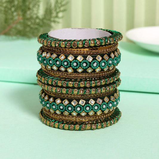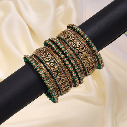 Green Color Velvet Work Bangle Set: 2.8 (TRB180GRN-2.8)