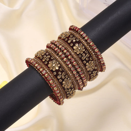 Maroon Color Velvet Work Bangle Set: 2.4 (TRB181MRN-2.4)