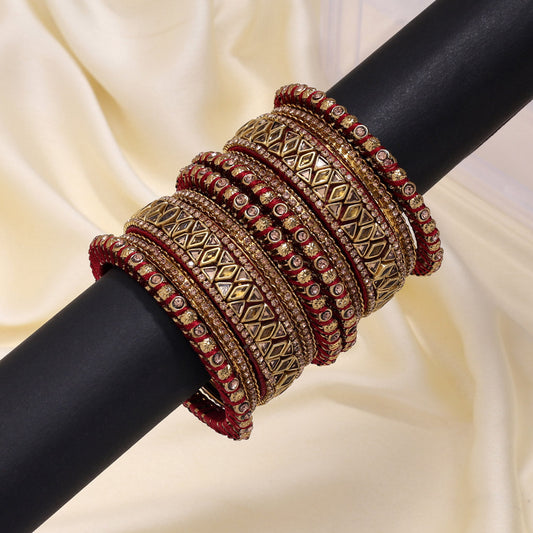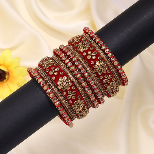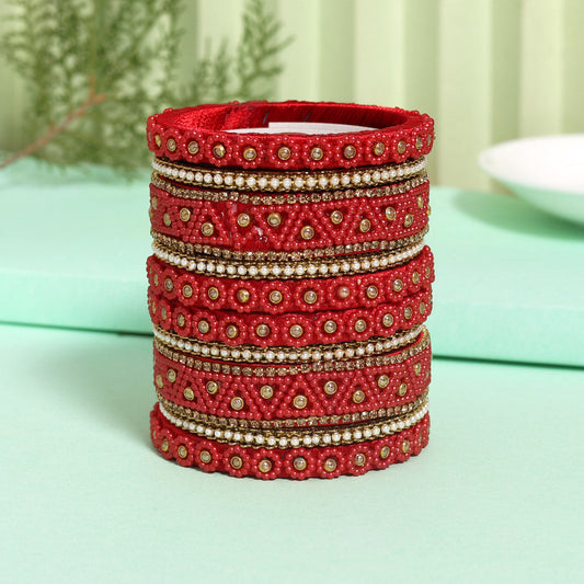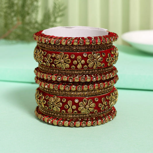 Red Color Velvet Work Bangle Set: 2.6 (TRB181RED-2.6)