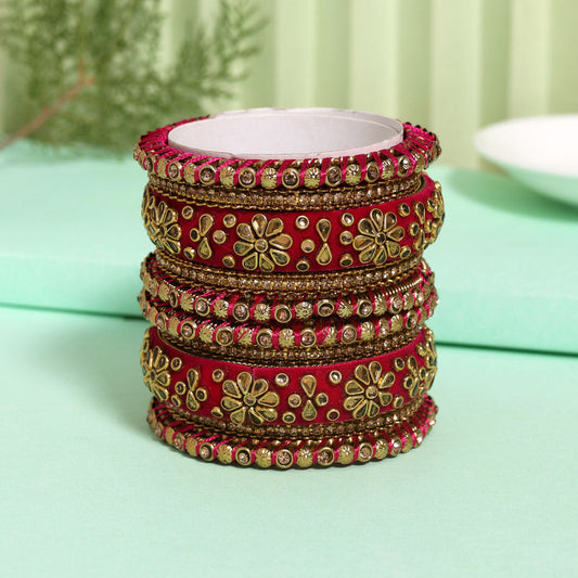 Red Color Velvet Work Bangle Set: 2.8 (TRB181RED-2.8)
