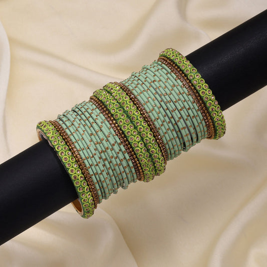 Light Green Color Velvet Work Bangle Set: 2.6 (TRB180LGRN-2.6)