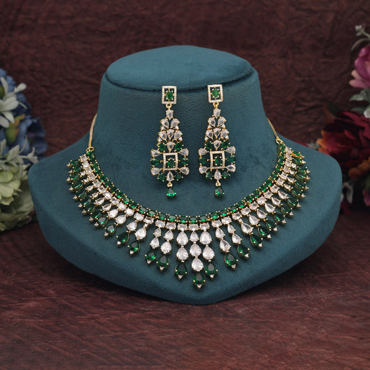 Green Color American Diamond Necklace Set (CZN970GRN)