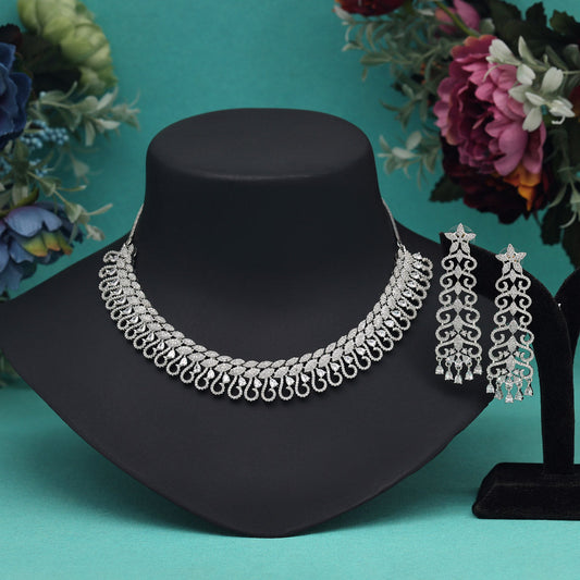 Silver Color American Diamond Necklace Set (CZN975SLV)