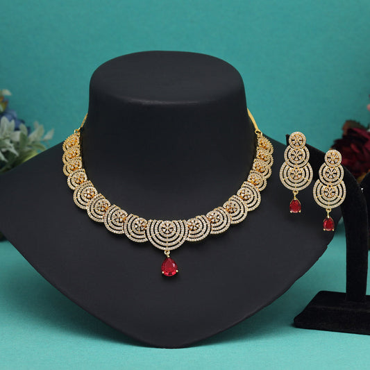 Ruby Color American Diamond Necklace Set (CZN977RUBY)