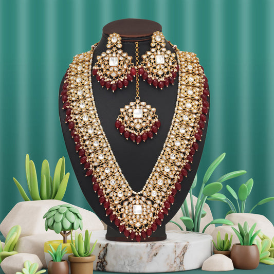 Maroon Color Long Kundan Necklace Set
