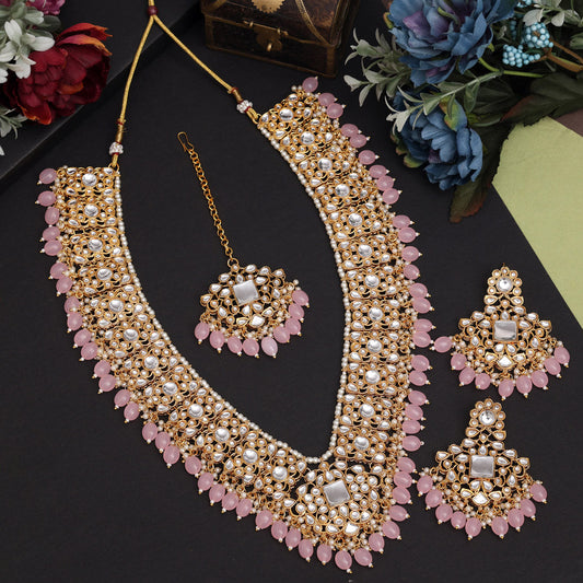 Sold outPink Color Kundan Necklace Set