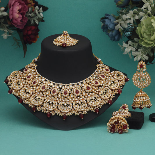 Maroon Color Kundan Necklace Set (KN1437MRN)