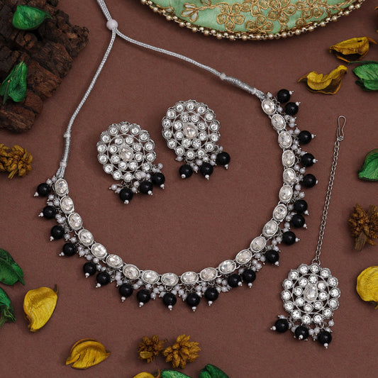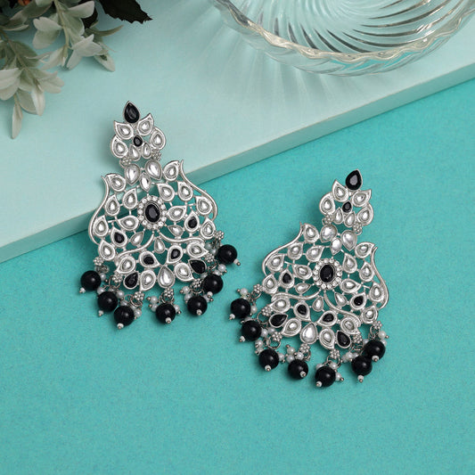 Black Color Kundan Earrings With Maang Tikka (KDTE558BLK)