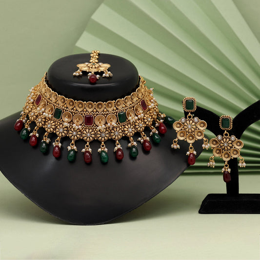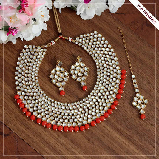 Gold Color Choker Kundan Necklace Set (KN1128GLD)